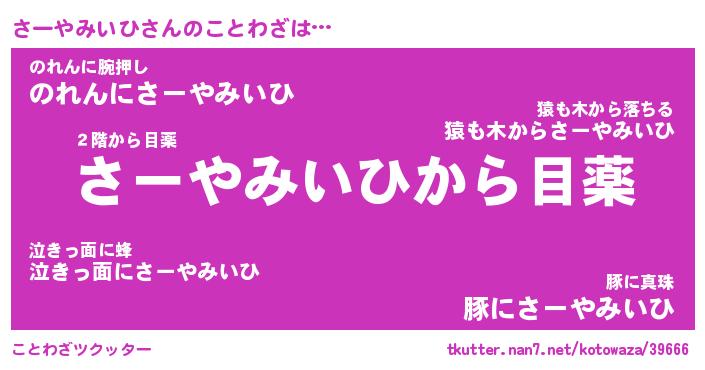 | 胡散臭い通販商品みたいなあだ名 | 『億万長者になれるブレスレット…その名も「さーやみいひ」』 |