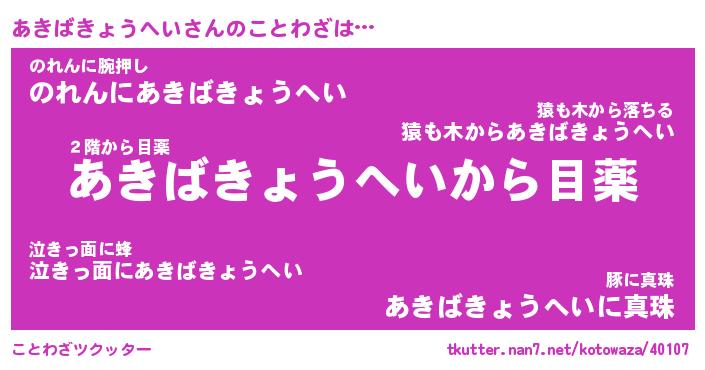 | 胡散臭い通販商品みたいなあだ名 | 『モテモテ間違いなし霊験あらたかなお札…その名も「あきばきょうへい」』 |