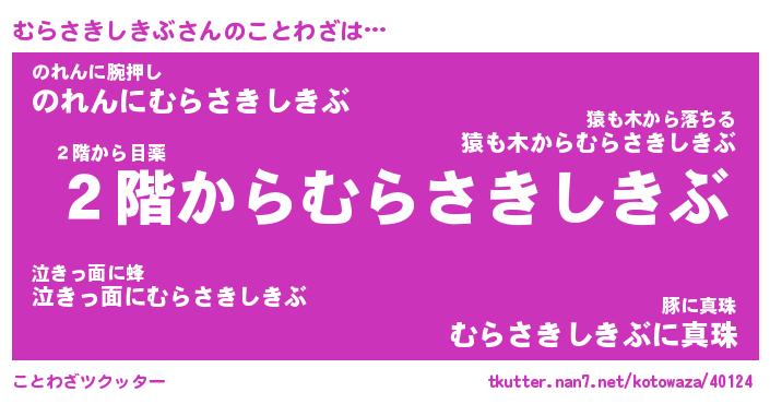 | 胡散臭い通販商品みたいなあだ名 | 『必ず成功するブレスレット…その名も「むらさきしきぶ」』 |