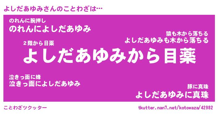 | ヒーロー風カッコイイあだ名 | 『スーパーヨシダアユミ』『天弓騎士ヨシ』 |