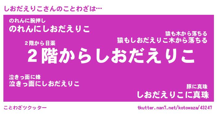 | 胡散臭い通販商品みたいなあだ名 | 『必ず成功する霊験あらたかなお札…その名も「しおだえりこ」』 |