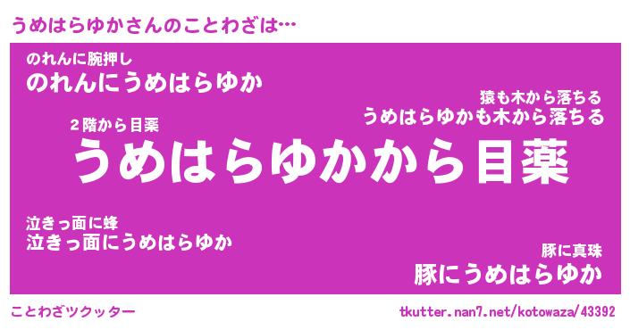 | ヒーロー風カッコイイあだ名 | 『スーパーウメハラユカ』『暗黒騎士ウメ』 |