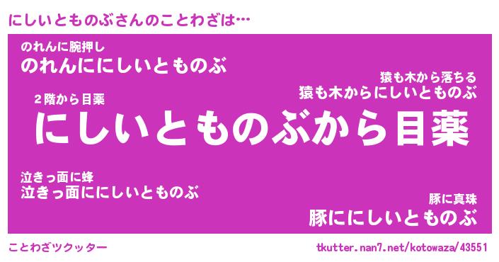 | 胡散臭い通販商品みたいなあだ名 | 『億万長者になれる霊験あらたかなお札…その名も「にしいとものぶ」』 |