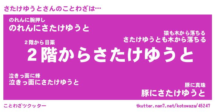 | 胡散臭い通販商品みたいなあだ名 | 『必ず成功する霊験あらたかなお札…その名も「さたけゆうと」』 |