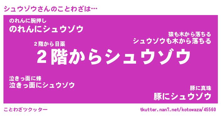| 胡散臭い通販商品みたいなあだ名 | 『必ず成功する霊験あらたかなお札…その名も「シュウゾウ」』 |