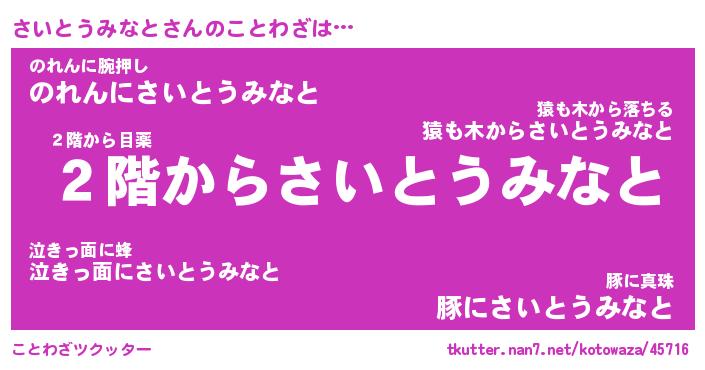 | 恥ずかしいあだ名 | 『プリティーさいとうみなと』『さいちん』 |