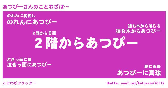 | 2回繰り返すあだ名 | 『あつあつ』『ああつつ』『ぶかぶか』 |