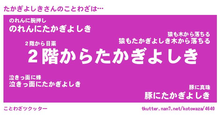 | 男性向けラノベタイトル風あだ名 | 『たかぎよしきの憂鬱』 |