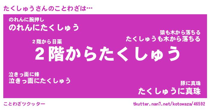 | ヘコむあだ名 | 『たくにゅー』『なまこ酢』『たくを』 |