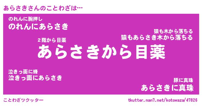 | 胡散臭い通販商品みたいなあだ名 | 『億万長者になれるブレスレット…その名も「あらさき」』 |