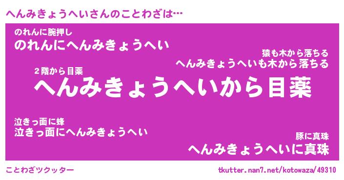 | 胡散臭い通販商品みたいなあだ名 | 『億万長者になれるブレスレット…その名も「へんみきょうへい」』 |