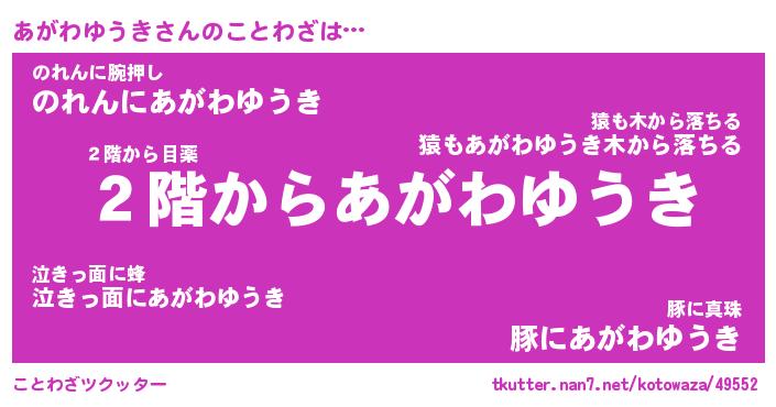 | ツイッター | あがわゆうきさんのツイッターID『masyumaro_star』 |