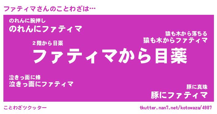 | 胡散臭い通販商品みたいなあだ名 | 『億万長者になれる霊験あらたかなお札…その名も「ファティマ」』 |