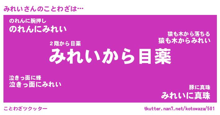 | ヘコむあだ名 | 『みれっふぃ~』『豆乳』『みれっぺ』 |