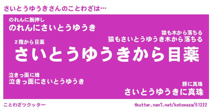 | 胡散臭い通販商品みたいなあだ名 | 『億万長者になれるブレスレット…その名も「さいとうゆうき」』 |