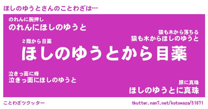 | 胡散臭い通販商品みたいなあだ名 | 『億万長者になれるブレスレット…その名も「ほしのゆうと」』 |