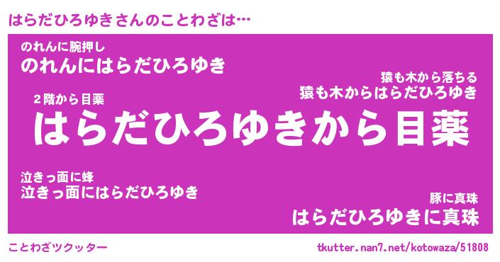 | 胡散臭い通販商品みたいなあだ名 | 『億万長者になれるブレスレット…その名も「はらだひろゆき」』 |