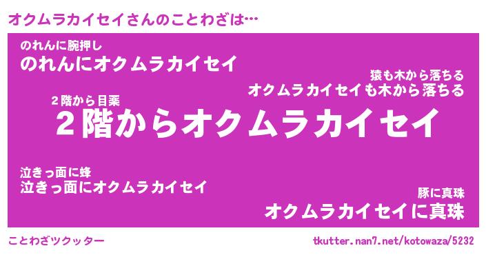 | 欧米人風あだ名 | 『マイケルオクムラカイセイ』 |