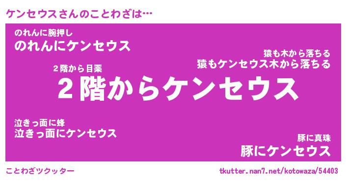| ヘコむあだ名 | 『ケンにゅー』『酢こんぶ』『ケンを』 |