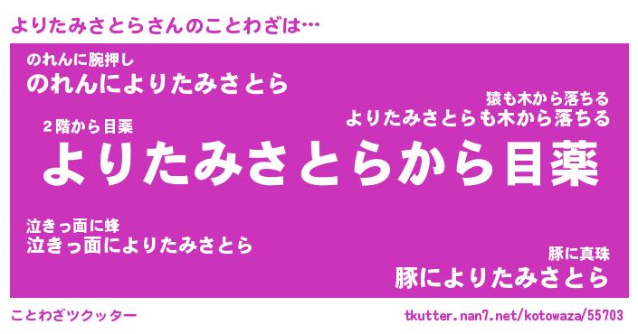 | 胡散臭い通販商品みたいなあだ名 | 『億万長者になれるブレスレット…その名も「よりたみさとら」』 |