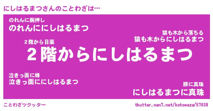 | 男性向けラノベタイトル風あだ名 | 『にしはるまつの憂鬱』 |