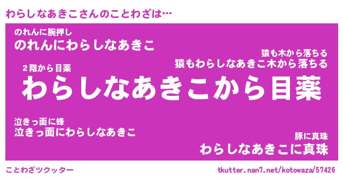 | ヘコむあだ名 | 『わらもー』『なまこ酢』『わらっ子』 |