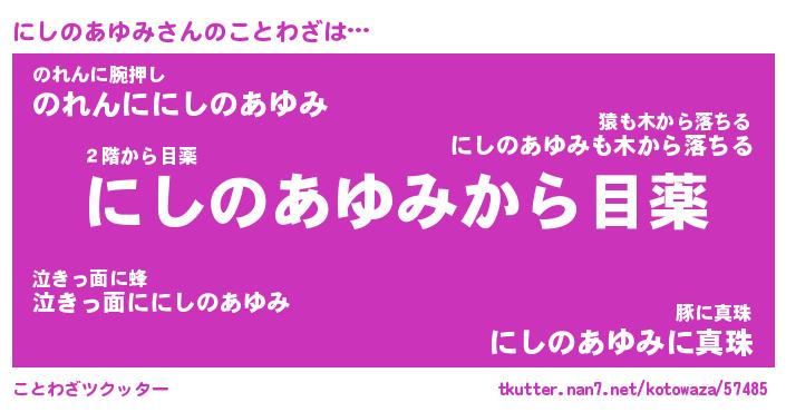 | ヘコむあだ名 | 『にしもー』『なまこ酢』『にし太郎』 |