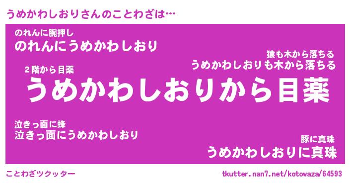 | 胡散臭い通販商品みたいなあだ名 | 『億万長者になれるブレスレット…その名も「うめかわしおり」』 |