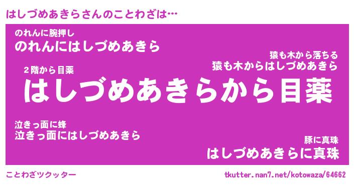 | 胡散臭い通販商品みたいなあだ名 | 『モテモテ間違いなしブレスレット…その名も「はしづめあきら」』 |