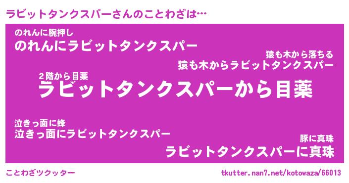 | 胡散臭い通販商品みたいなあだ名 | 『億万長者になれる霊験あらたかなお札…その名も「ラビットタンクスパー」』 |