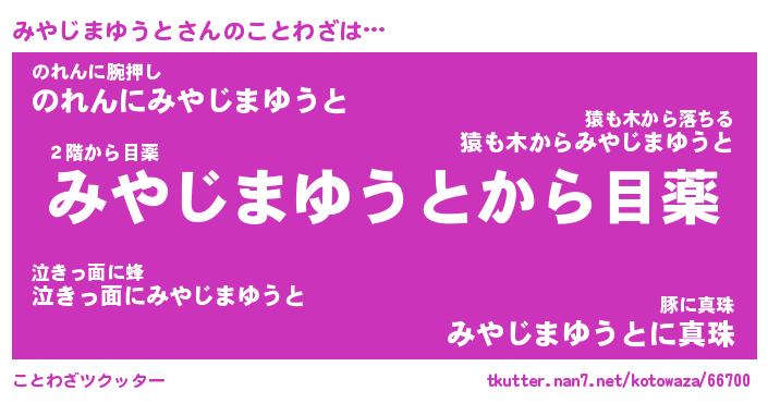 | 恥ずかしいあだ名 | 『プリティーみやじまゆうと』『みやちん』 |