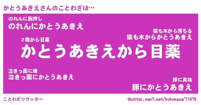 | 胡散臭い通販商品みたいなあだ名 | 『億万長者になれる霊験あらたかなお札…その名も「かとうあきえ」』 |