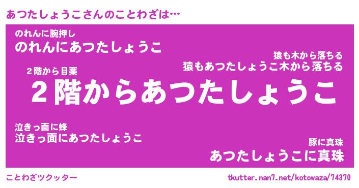 | 恥ずかしいあだ名 | 『プリティーあつたしょうこ』『あつちん』 |