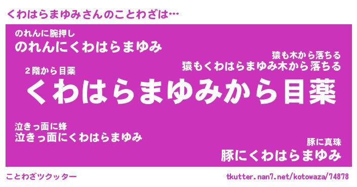 | 胡散臭い通販商品みたいなあだ名 | 『億万長者になれるブレスレット…その名も「くわはらまゆみ」』 |