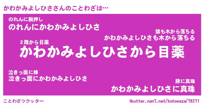 | 胡散臭い通販商品みたいなあだ名 | 『億万長者になれる霊験あらたかなお札…その名も「かわかみよしひさ」』 |