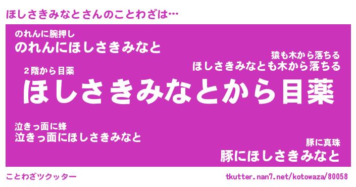 | 恥ずかしいあだ名 | 『プリティーほしさきみなと』『ほしちん』 |