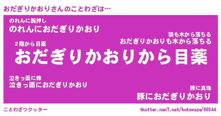 | 胡散臭い通販商品みたいなあだ名 | 『億万長者になれるブレスレット…その名も「おだぎりかおり」』 |