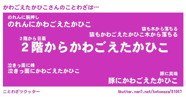 | 胡散臭い通販商品みたいなあだ名 | 『必ず成功するブレスレット…その名も「かわごえたかひこ」』 |