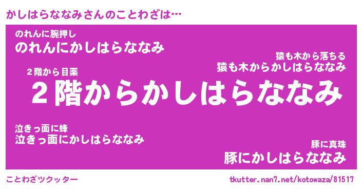 | 胡散臭い通販商品みたいなあだ名 | 『必ず成功するブレスレット…その名も「かしはらななみ」』 |