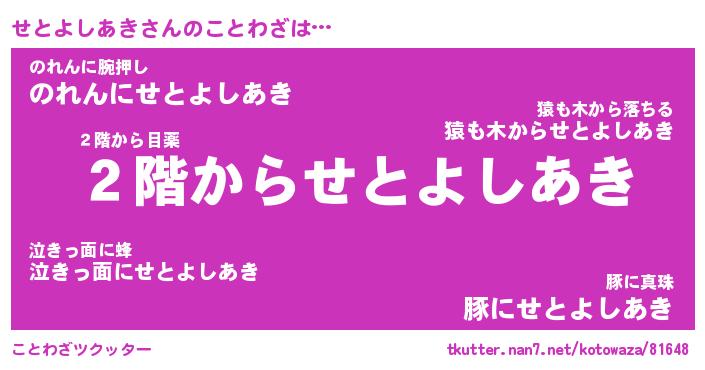 | 恥ずかしいあだ名 | 『プリティーせとよしあき』『せとっちょ』 |