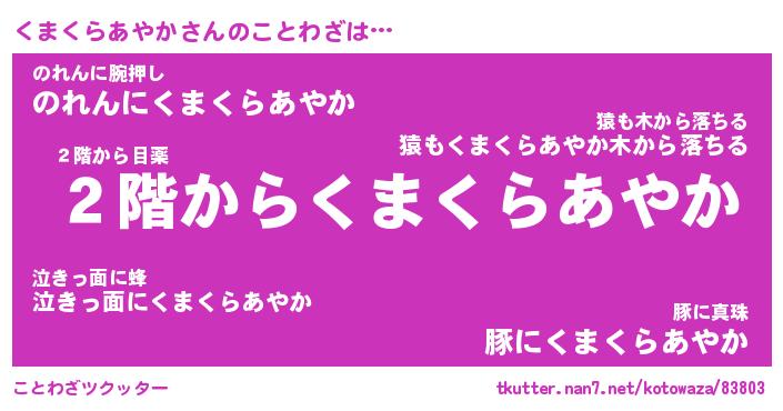 | 胡散臭い通販商品みたいなあだ名 | 『必ず成功する霊験あらたかなお札…その名も「くまくらあやか」』 |