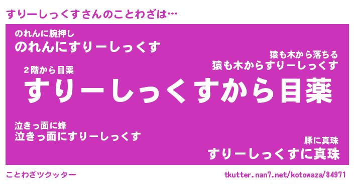 | 胡散臭い通販商品みたいなあだ名 | 『億万長者になれる霊験あらたかなお札…その名も「すりーしっくす」』 |