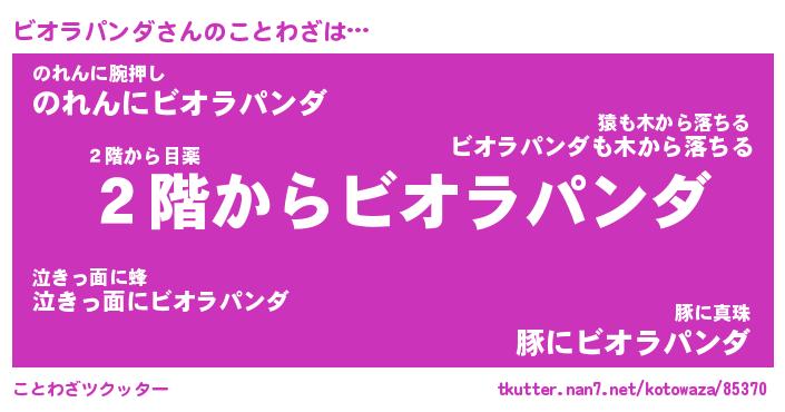 | 胡散臭い通販商品みたいなあだ名 | 『モテモテ間違いなしブレスレット…その名も「ビオラパンダ」』 |