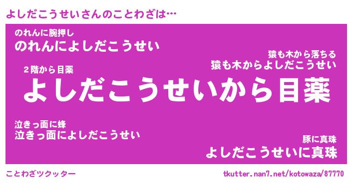 | 恥ずかしいあだ名 | 『プリティーよしだこうせい』『よしちん』 |