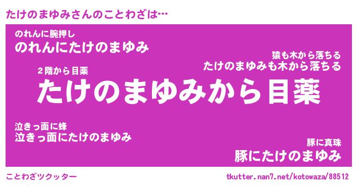 | 胡散臭い通販商品みたいなあだ名 | 『億万長者になれるブレスレット…その名も「たけのまゆみ」』 |