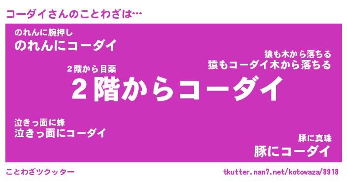 | 意味不明あだ名 | 『ペロリンコーダイ』『永久保存コーダイ』 |
