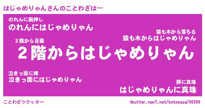 | 男性向けラノベタイトル風あだ名 | 『はじゃめりゃんの憂鬱』 |