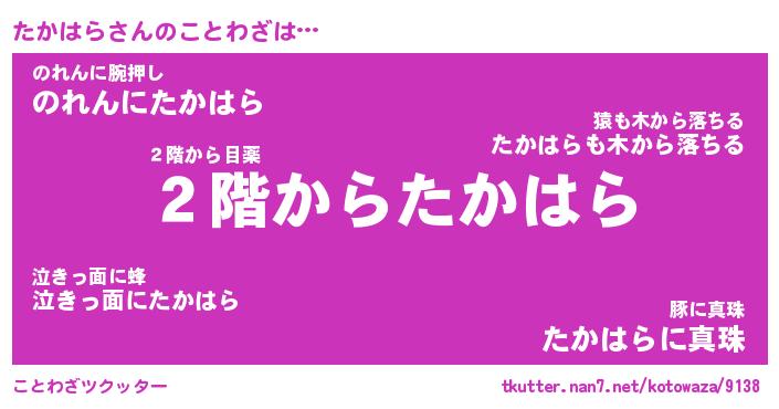| ヘコむあだ名 | 『たかにー』『なまこ酢』『たかっ子』 |