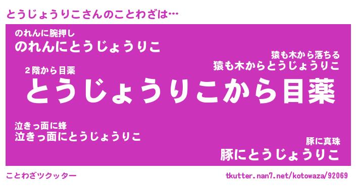 | ツイッター | とうじょうりこさんのツイッターID『dendenmushi_idle』 |
