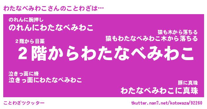 | 胡散臭い通販商品みたいなあだ名 | 『必ず成功する霊験あらたかなお札…その名も「わたなべみわこ」』 |